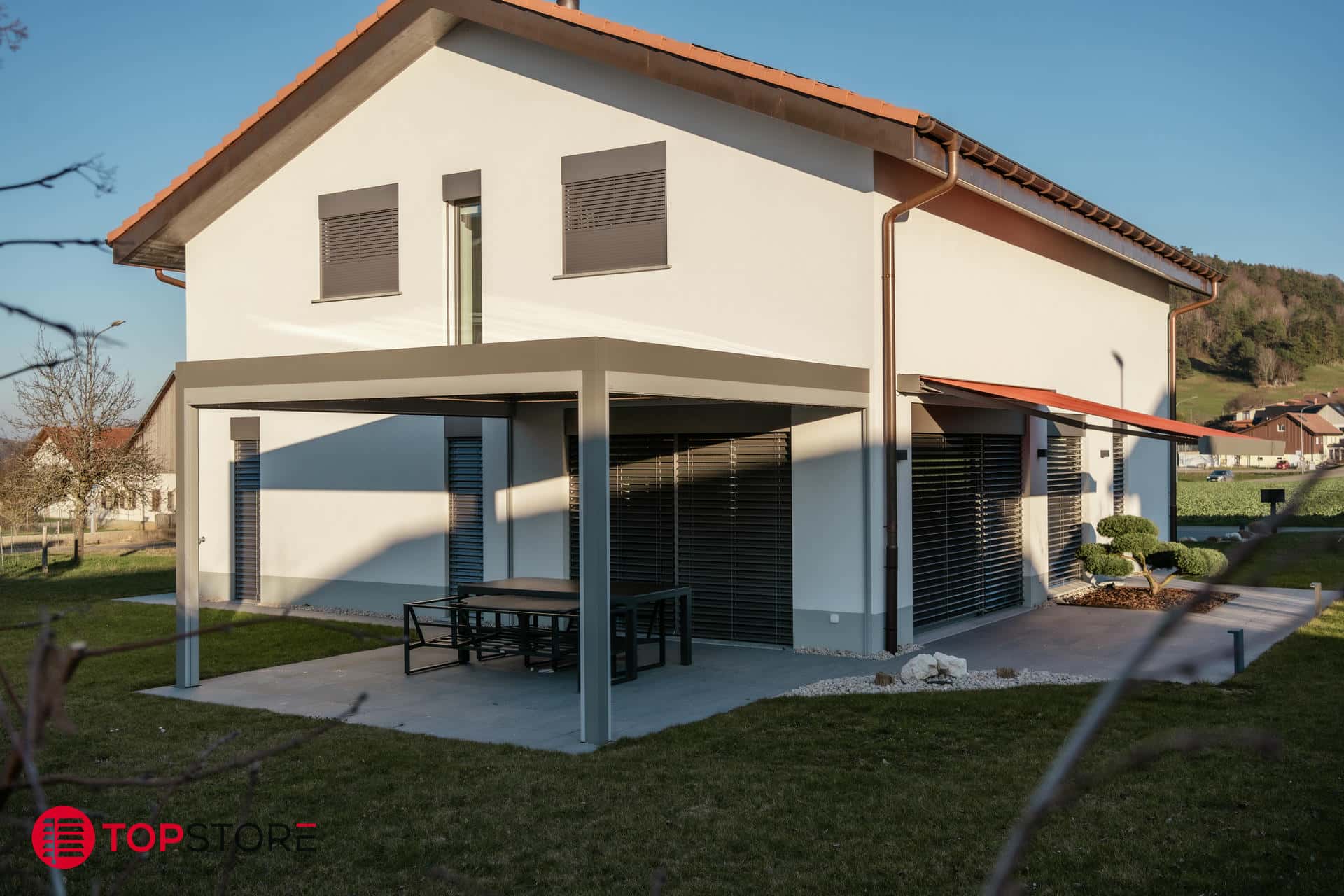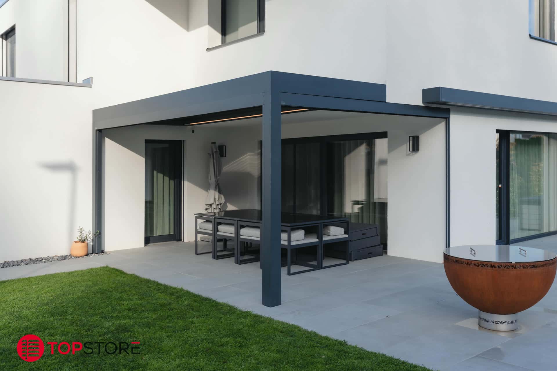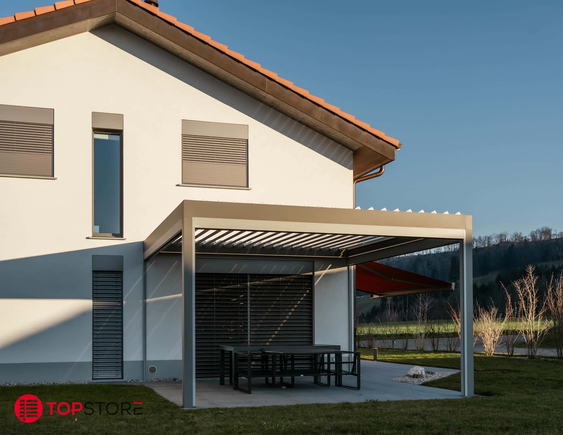 La BAVONA Hard-Top transforme votre terrasse en un véritable espace de vie extérieur, utilisable du printemps à l’hiver. Grâce à son toit à lamelles orientables haut de gamme, vous contrôlez parfaitement la lumière, l’ombre et la ventilation pour profiter d’un confort optimal à tout moment de la journée.