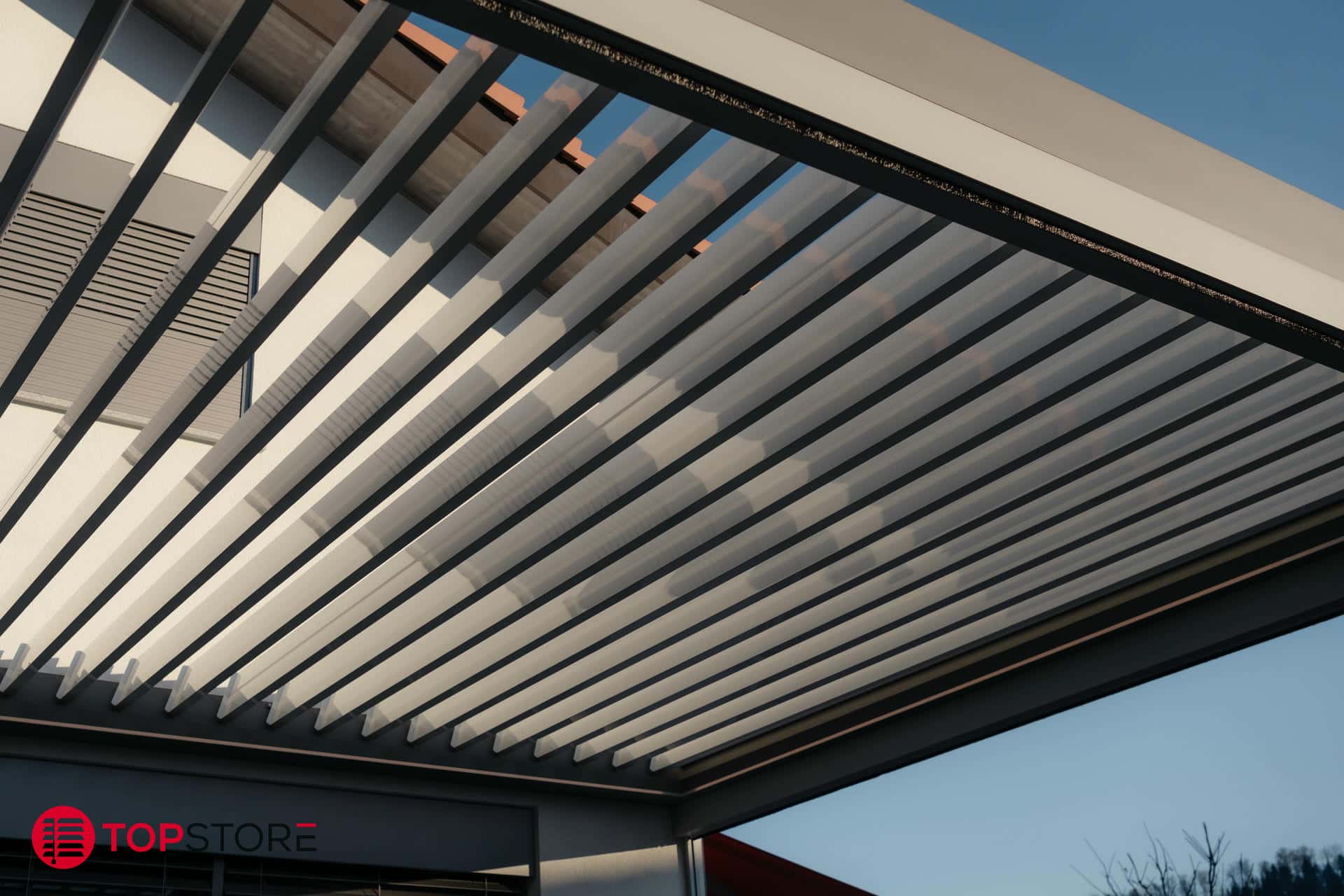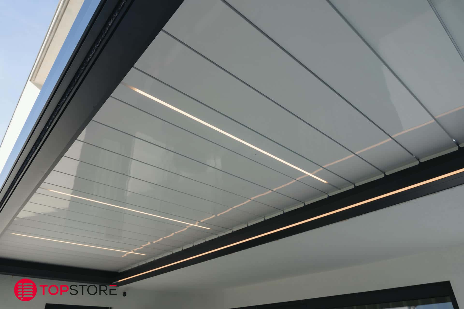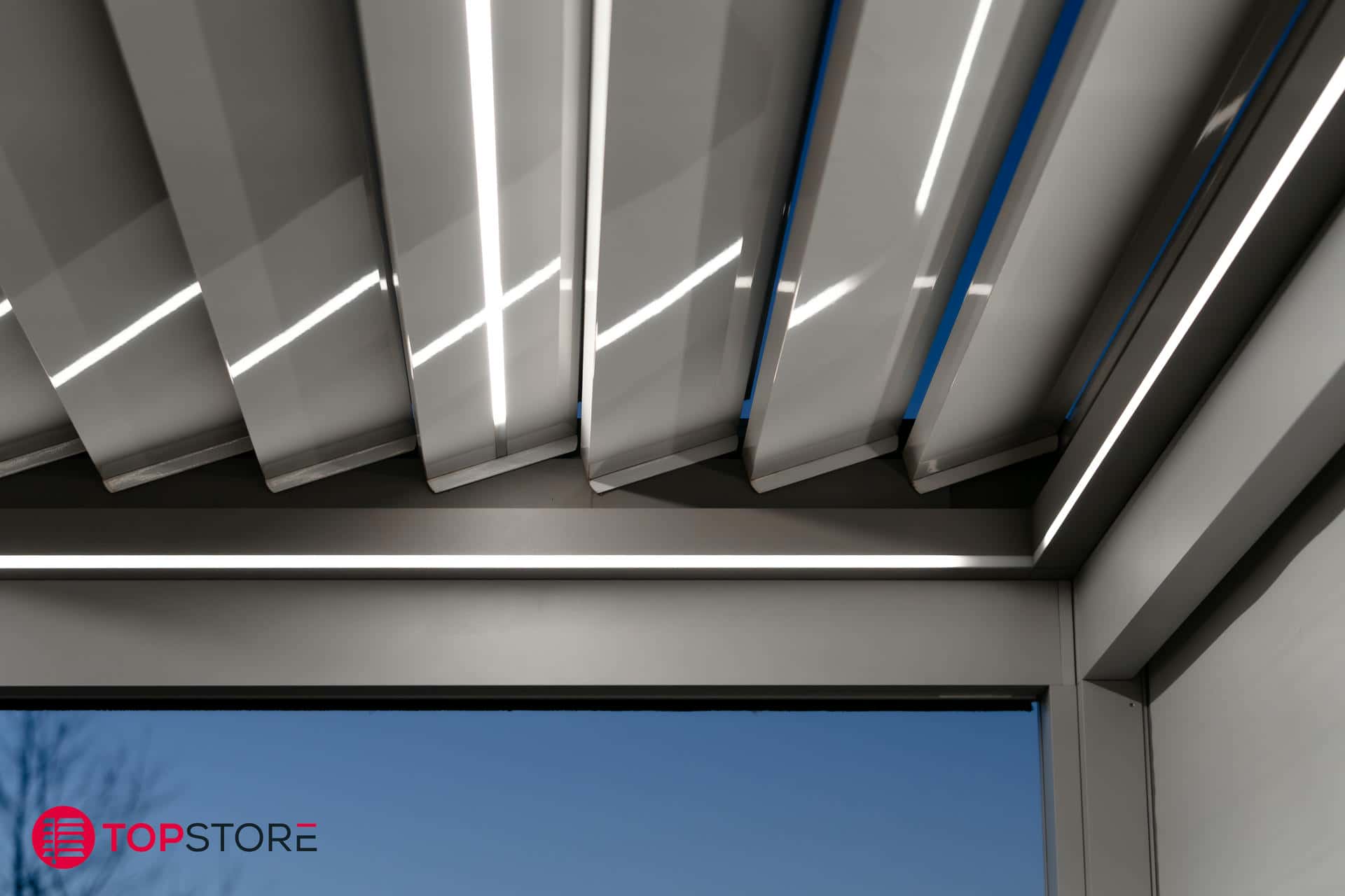 - Toit à lamelles orientables jusqu’à 160° pour un réglage précis du soleil et de la ventilation