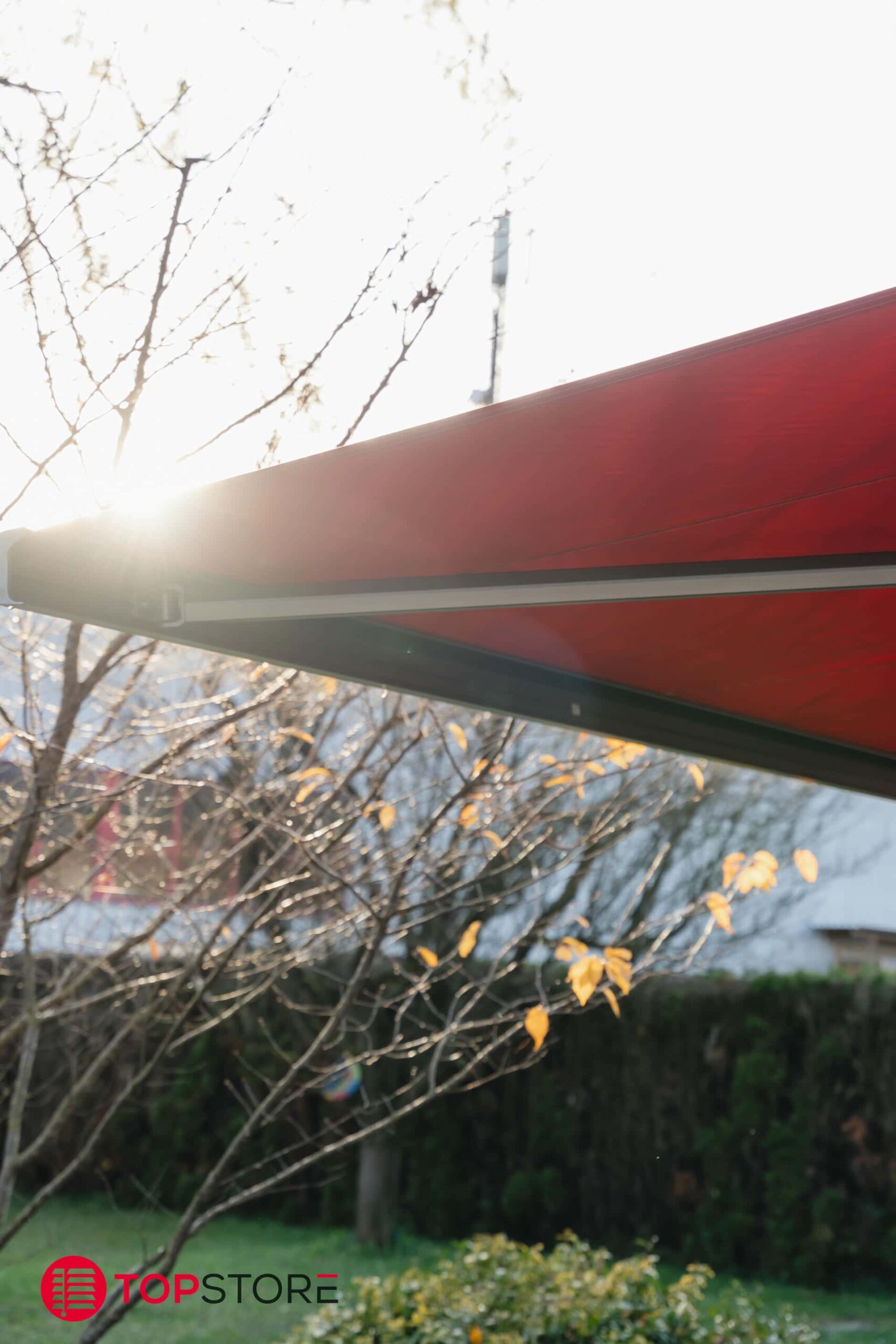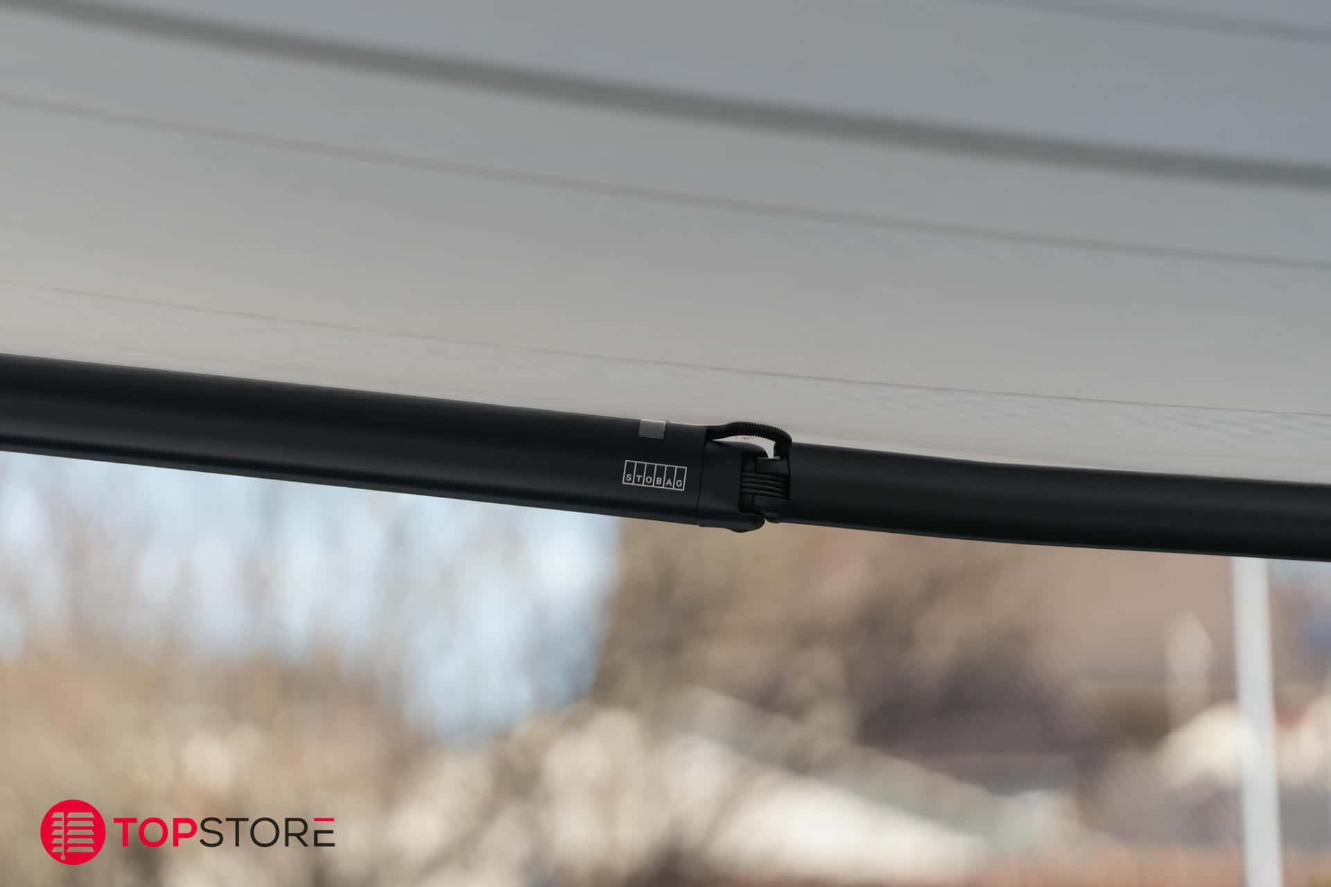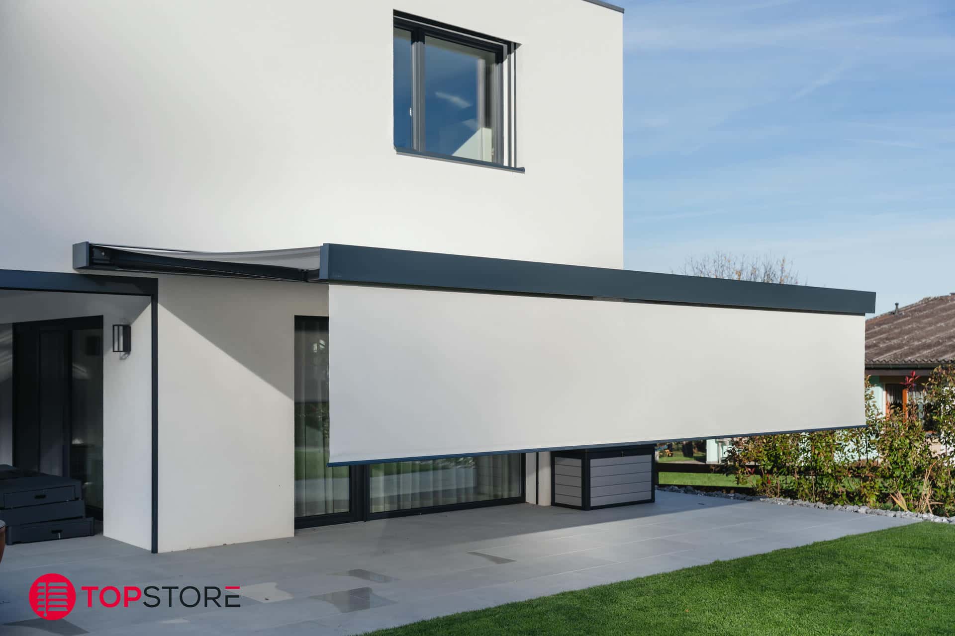 - Volant déroulable motorisé jusqu’à 1,50 m, apportant protection solaire supplémentaire et intimité, sans compromettre l’esthétique