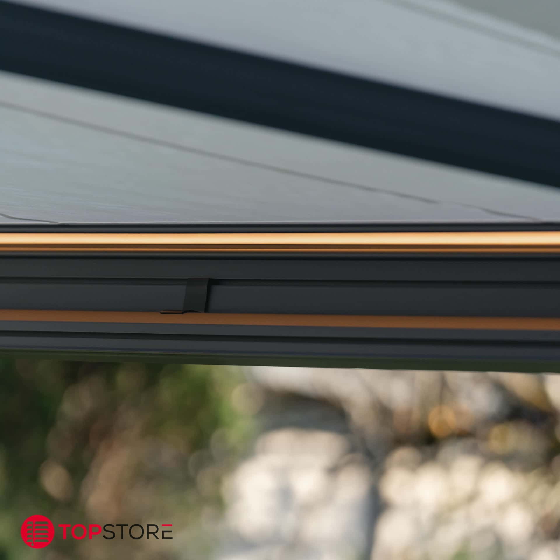 La BAVONA Hard-Top transforme votre terrasse en un véritable espace de vie extérieur, utilisable du printemps à l’hiver. Grâce à son toit à lamelles orientables haut de gamme, vous contrôlez parfaitement la lumière, l’ombre et la ventilation pour profiter d’un confort optimal à tout moment de la journée.